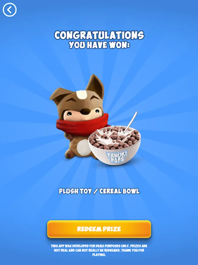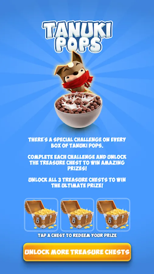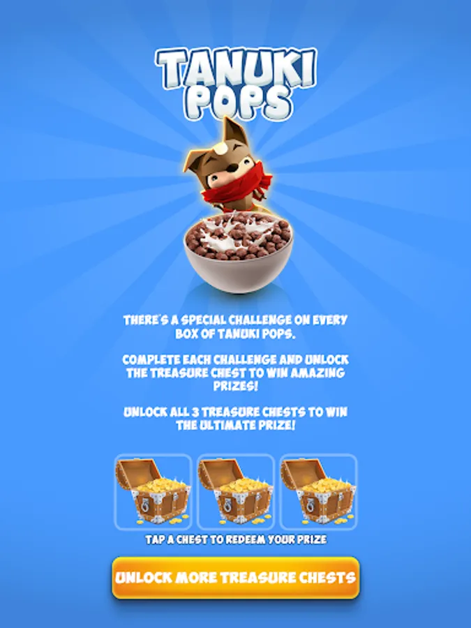 Download the Tanuki Pops app, scan Tanuki Cereal box, play and win prizes.