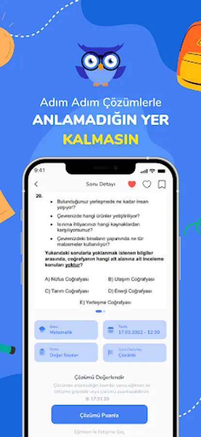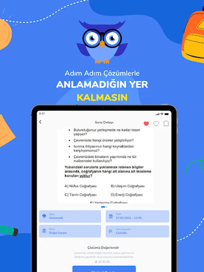 The solution is in your pocket: The solutions to all your questions are in your pocket. YKS, LGS, TYT, AYT, YDT, KPSS, LGS, it is important to get detailed, fast and understandable solution support for the questions that you are stuck with or cannot solve as much as solving the questions in preparation. The solution to all the questions you can't solve with Studia is instantly in your pocket without even having to leave your desk.