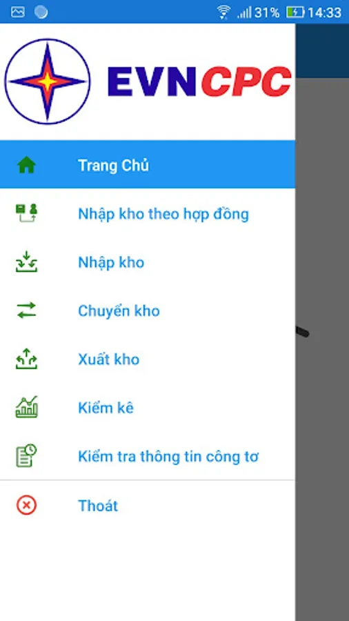 ứng dụng quét mã code công tơ/ thùng công tơ để thực hiện các chức năng nhập kho, chuyển kho, xuất kho...