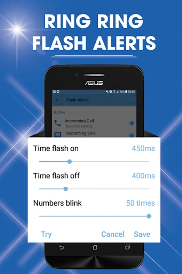 Flash alert on call and sms. A fast blinking flash on call application gives you fast flash alerts when an incoming call arrives. Don’t miss the blinking call alerts and sms alerts with flash on call and flash on SMS. This flash on call app is user-friendly and easy to use flash alerts. When you receive a call, new text message, the flash will blink.