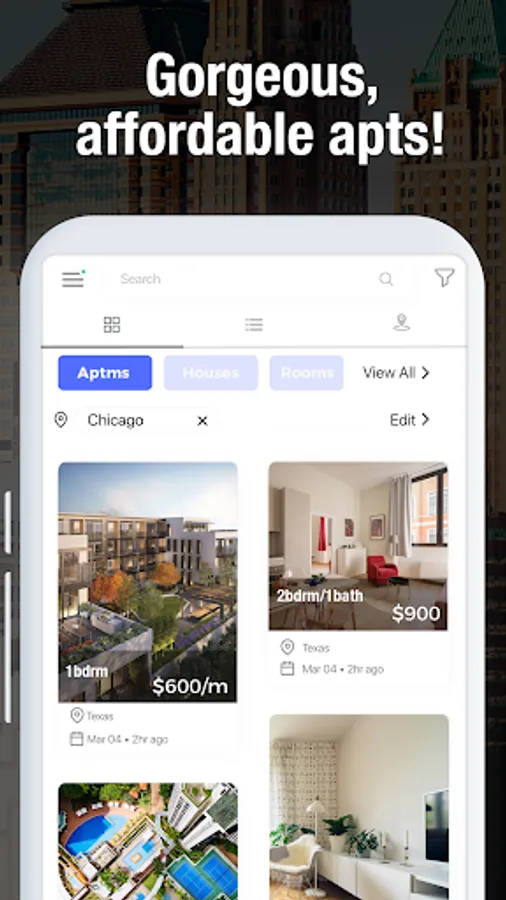 PHOTOS: For-rent apartments, houses, condos and townhomes in a list or in a photo grid.