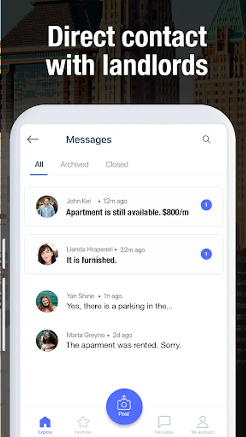 NO MIDDLEMAN: Contract the landlords and sellers directly. Your messages will be delivered in less than a second!