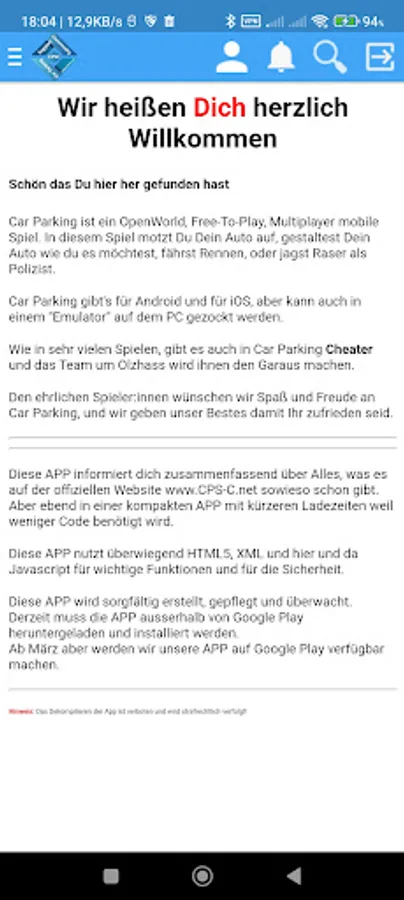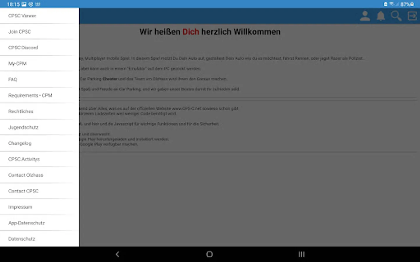 In the English version you will receive important information about CPSC/ Olzhass Games and important tools and contact options. Support the development team and us CPSC for Car Parking