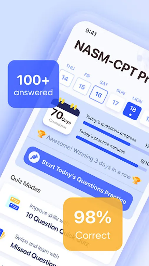 NASM CPT Exam Prep 2023 is an exam preparation application that will help you pass the Certified Personal Trainer (CPT) exam administered by the National Academy of Sports Medicine (NASM) with a high score on your first attempt.