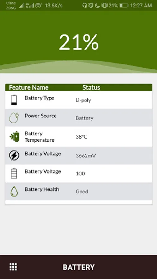 Battery Insights: Monitor battery health, technology, charge level, voltage, and temperature with precision.