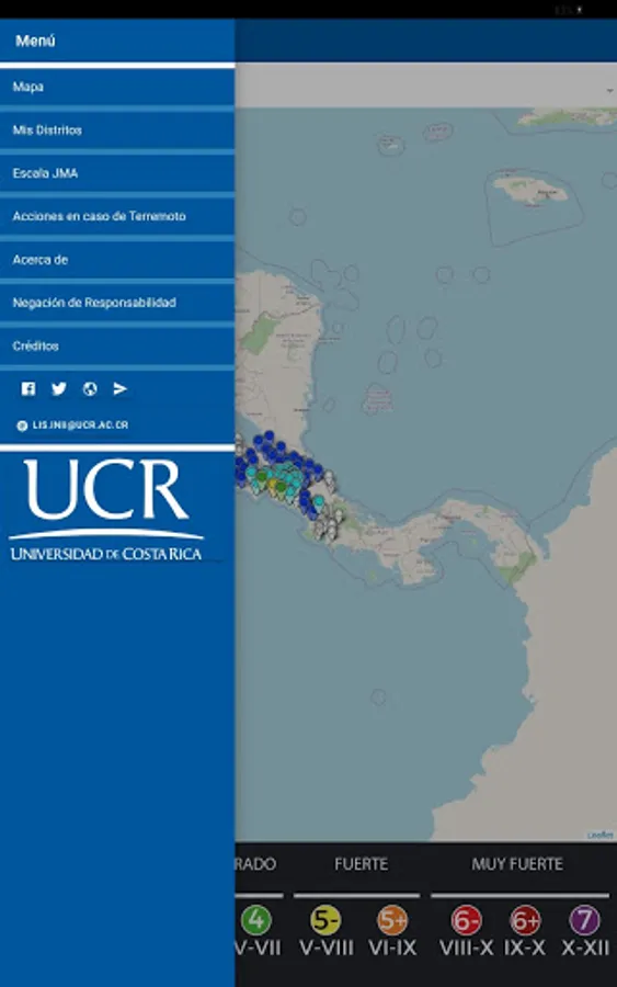 The Seismic Engineering Laboratory (LIS), attached to the Engineering Research Institute (INII) of the University of Costa Rica (UCR), developed a system called MAS-LIS (Seismic Engineering Laboratory Secondary Acceleration Monitoring) that processes the information of more than 100 registration stations. With this information, the seismic intensity is calculated on the scale of the Japan Meteorological Agency (JMA) every 5 seconds. When a strong earthquake is detected, the system immediately sends a map and a table with the value of the seismic intensity through the social network Twitter and Telegram.