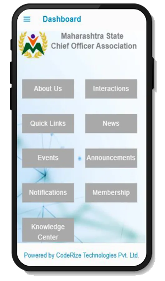 The mobile application is designed and developed for Maharashtra State Chief Officer's Association. Officers can Register themselves, Create their profiles , search for other registered officers, view important GRs and other published documents. This application will be a Centralized Platform for officers enabling: