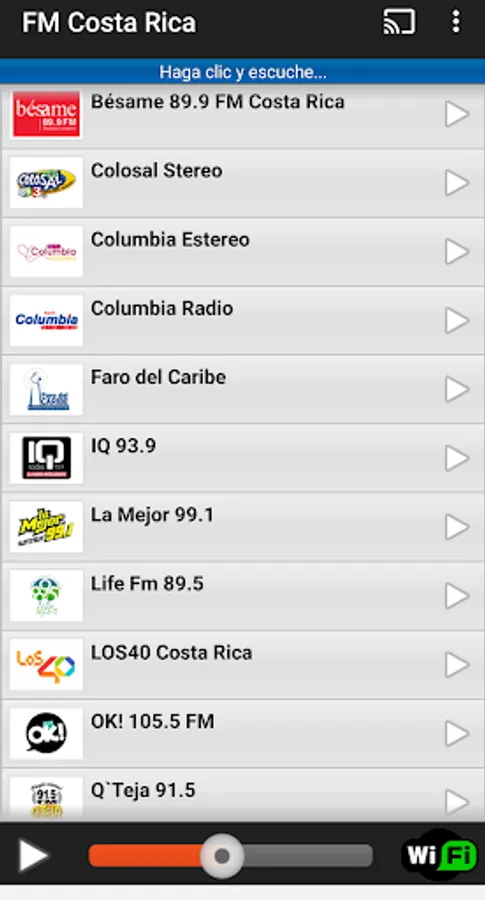 Listen: Radio Monumental, Columbia Radio, WAOFM 92.3, The Best 99.1, Kiss Me 89.9 FM Costa Rica, LOS40 Costa Rica, Teletica Radio 91.5 FM, Radio Two, Zeta FM, Radio Disney, Radio Omega, OK! 105.5 FM, Radio Maria Costa Rica, Radio Fides 93.1 FM, Q`Teja 91.5, Radio Hit 104.7 FM, Caribbean Lighthouse, Radio Ación, Radio Momentos Reloj, Urban 106, BBN Radio, IQ 93.9, Radio Casino, Colossal Stereo, Radio 88 Stereo, Radioshack Costa Rica, Rock FM Costa Rica, 959 Radio, Radio Malpais, Radio Zona Alta, Musical Radio, Columbia Estereo, Radio Sinfonola, Life Fm 89.5, Actual FM