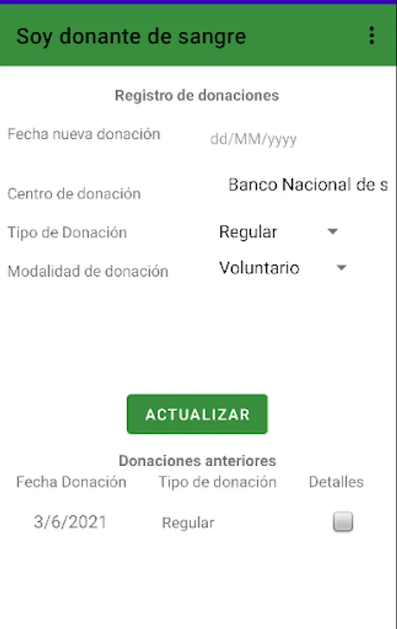 This application helps Latin American voluntary blood donors to control and track their periodic contributions