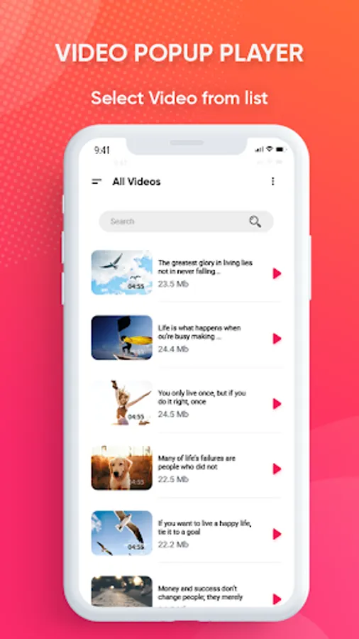 Video Popup Player is a savvy application which is play recordings with a solitary coasting point. Application permits clients to change recordings on popup screen with see video list, So change at whatever point you need to change video cut from the rundown. You can even resize (squeeze/zoom) your video popups.