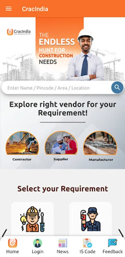 CRACINDIA is now a meeting point for service receivers with service providers with comfort of searching of Construction Resources At just One Click in India backed by rating of services to the clients this will ensure hassle-free completion of services required.