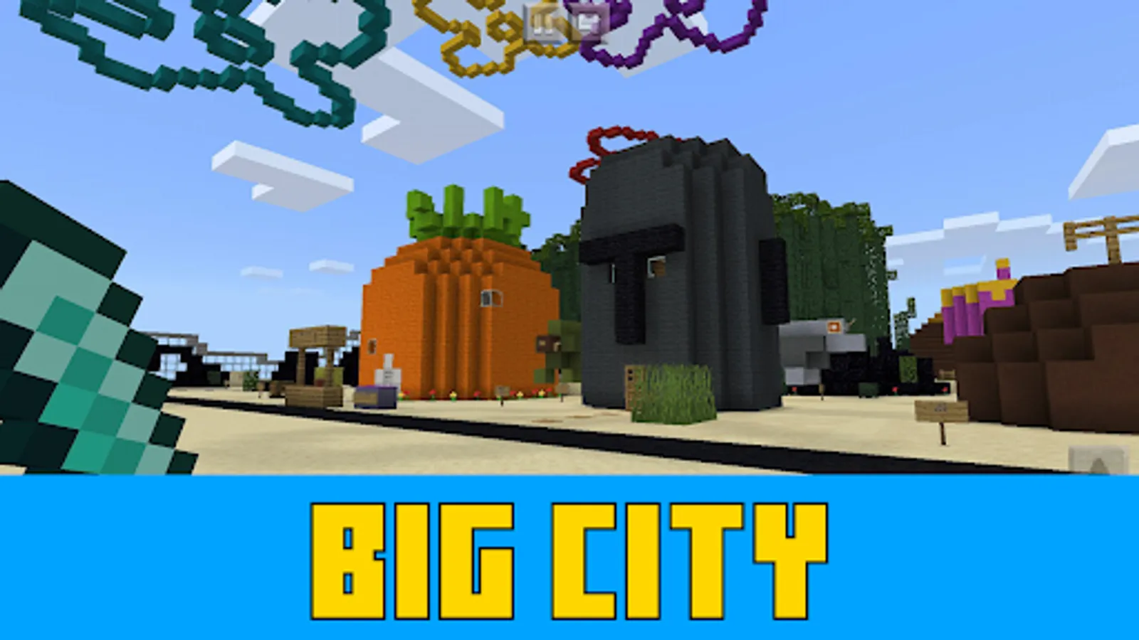 Bikini Bob mod for minecraft will take you to the cartoon. Bikini Bottom for Minecraft includes all the inhabitants of the Bikini Bottom map. Walking along this wonderful map, you can meet Sandy's house, where the squirrel lives. Pineapple house, where the main character lives. If you go a little further you will see Krusty krab, which is famous for its krabsburgers. And how do you like the fields of jellyfish? You can catch jellyfish! The mod for minecraft is worked out to the smallest detail, you can work in Krusty Krab. Customers will come to you. Mod bikini bob in minecraft is underwater, but you don't have to wear scuba gear. Call your friends and work, build, be surprised together. In our application there are other mods for minecraft that you will like. Bikini Bottom cards are ready for any challenges. Download the bikini bottom mod and try it yourself!