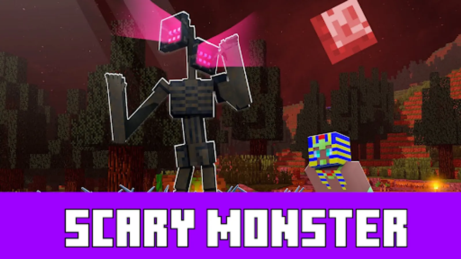 Siren head mod for minecraft bedrock edition adds a scary monster. It will hunt you and other players. What to do? You will have to fight the siren head mod for minecraft, but you will have to look for it. Of course, this is not so difficult, because when you approach, you will hear a siren head. Scary addons and mods scare absolutely everyone. You can play the siren head mod for free in our application. The siren head mod for minecraft is hiding in the woods, instead of its head there are two sirens. Scary mods for minecraft will definitely scare you. And you will have to build a huge bunker so that the siren head mod doesn't get you for sure. You can download these cool siren head mods for free in our app. Horror mods in minecraft have not only a siren's head mod, but also a cardboard cat. He hides in caves and catches lost people. It will also have to be destroyed.