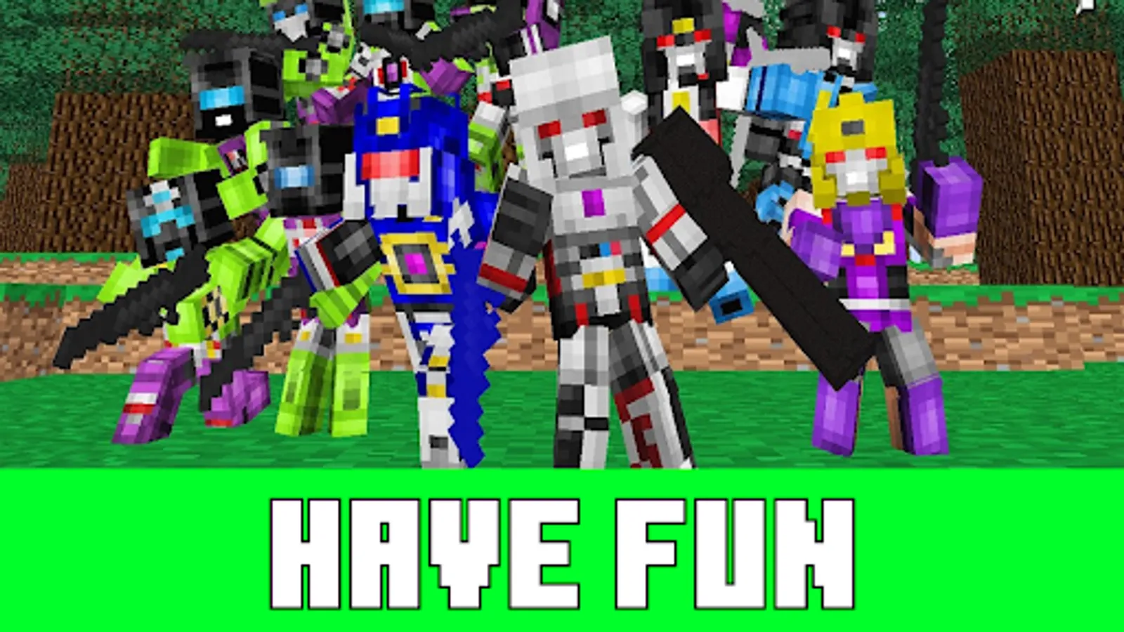 New items from fashion for minecraft. Evil Decepticon transformers robots are gathering an army to take over the world. To win, you will have to unleash all your powers and defeat them! With new mods and maps for minecraft for free, you can control robots for minecraft. Choose racing cars, sports cars, garbage trucks, trucks. And transform faster. Everyone can play minecraft for free with robots, so call your friends. Robots transformers for minecraft are capable of a lot. Just look at their weapons. All cars in minecraft look like ordinary city cars, but they can transform. Transformers mods can communicate and have their own distinctive sounds and animations. Mods for minecraft and for you have added weapons. Now you can shoot weapons with minecraft pe mods. Imagine that you have a robot weapon!
