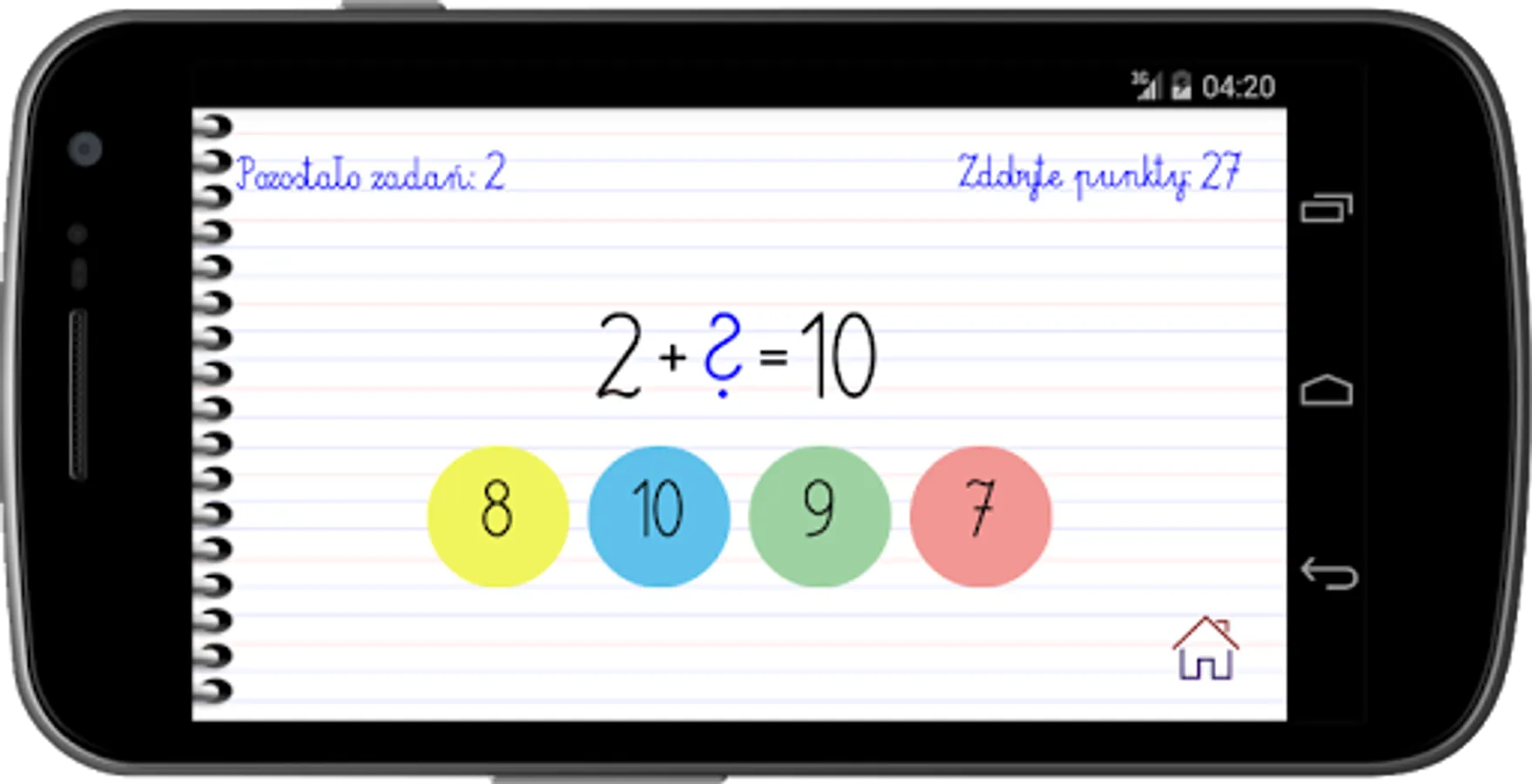 Friendly and colorful interface makes children will easily move around the parts of the application: adding and subtracting, multiplying and dividing plate.