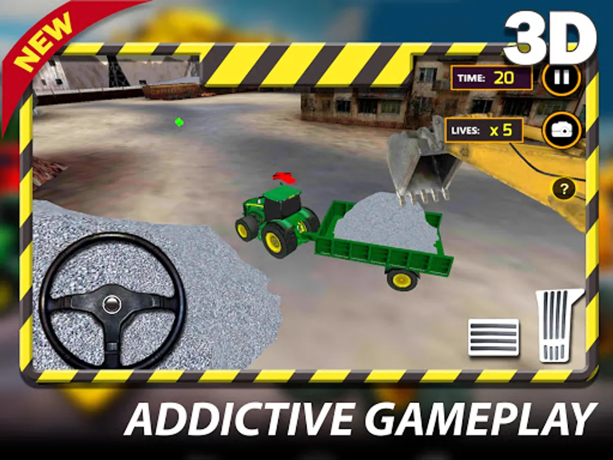 Play the construction tractor sim and you take over the control of 2 heavy excavation machines which are true to the originals in high-quality 3D graphics.