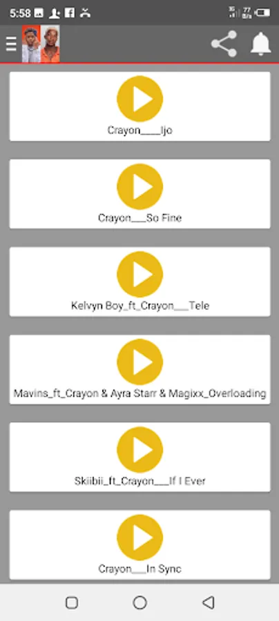 This app contains all crayon songs and magixx songs from Nigeria. All audio and video songs you will find in this app. There is no any cost in this app and is easy to use for everyone. Download this app to enjoy your favorite songs