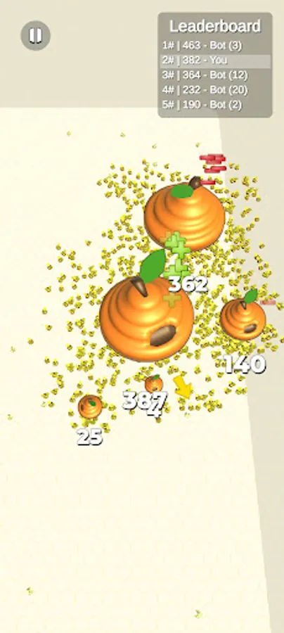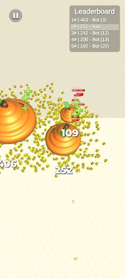 Get as many bees as you can and become the most powerful beehive by stinging other players! Be aware of larger beehives, as you can be eaten by them! Work on your fight strategy, until you get to first place in the competition!