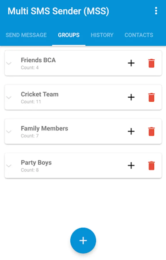● Group contact can be imported from excel file or also you can send message with excel file by importing contacts.