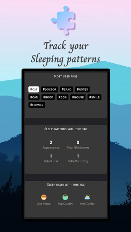 🌒 Tracking Dream Patterns: Add tags to your dreams and you can find the most common theme of your dreams based on your tags. This way, you can find out how your dream affect your mood & sleep.