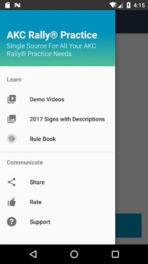 This app allows you to practice the exercises in a random order. You can also learn more about AKC Rally® exercises by reading the official 2017 exercise descriptions and judging criteria, and watching videos of others demonstrating the exercise.