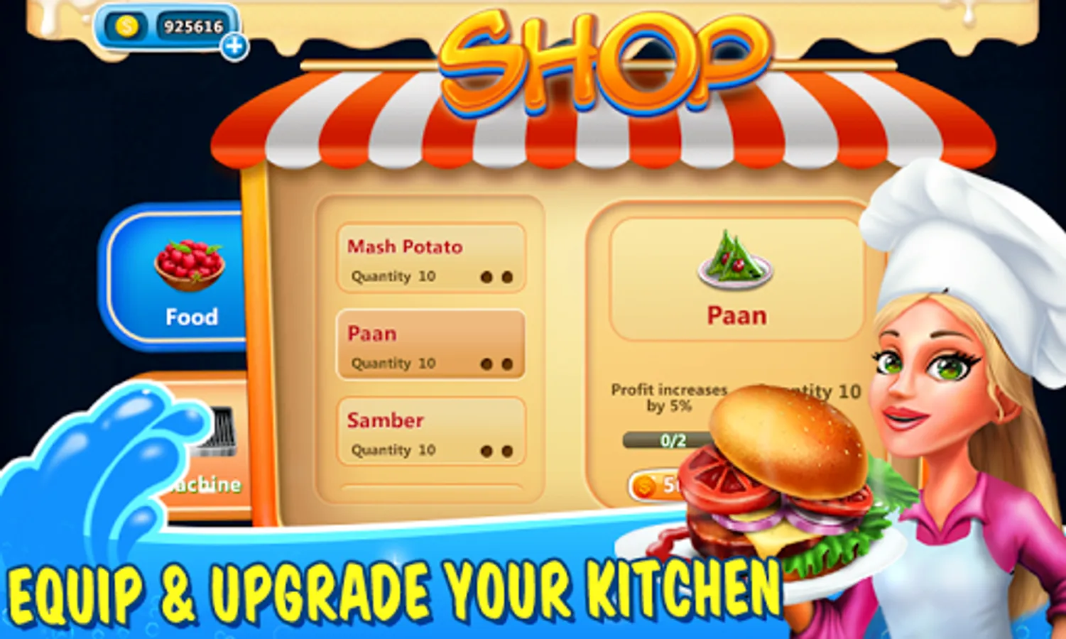 *upgrade kitchen appliances in this cooking game to cook and serve faster