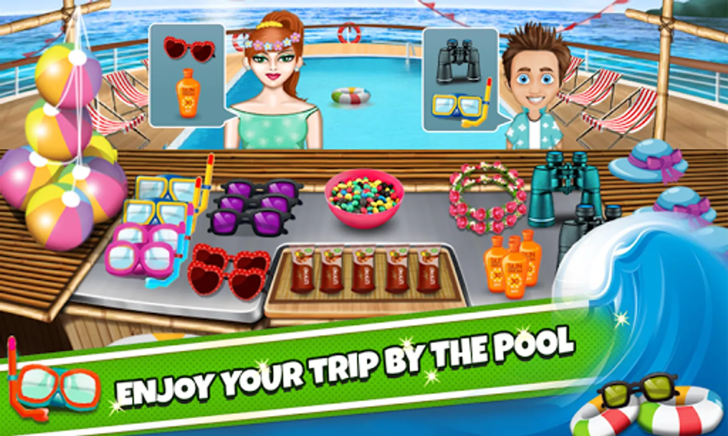 Swimming pool game : in this part of game you have to control over swimming pool of ship where a lot of travelers are waiting to use your swimming pool on you cruise ship and they need accessories to swim with. To make them happy and earn well provide them with all the accessories they need before entering into this swimming pool game.