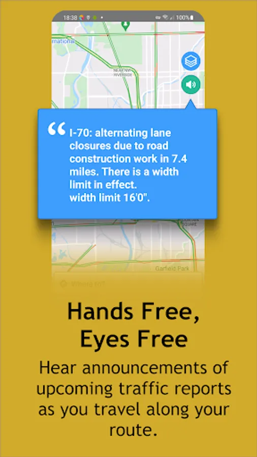 • Hands-free, eyes-free audio notifications of traffic events while you drive