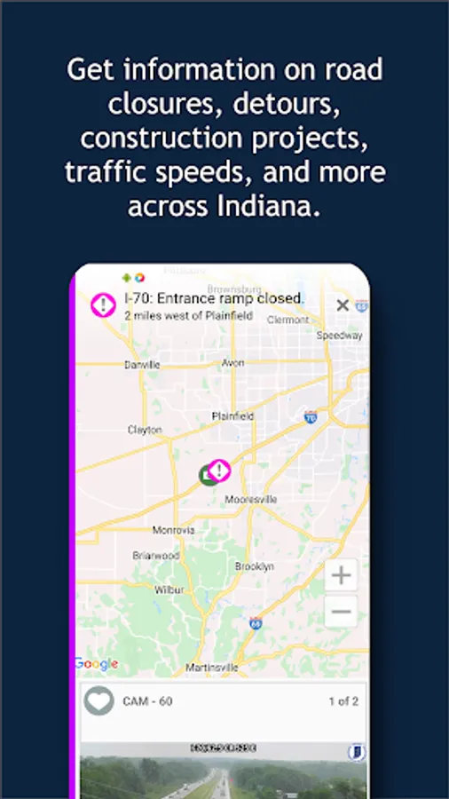 • A zoom-enabled map with tappable traffic event icons and surrounding camera views