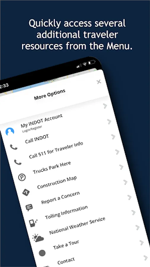 • Manage My INDOT personalized accounts including saved routes, areas, favorite camera views, and email and text alerts