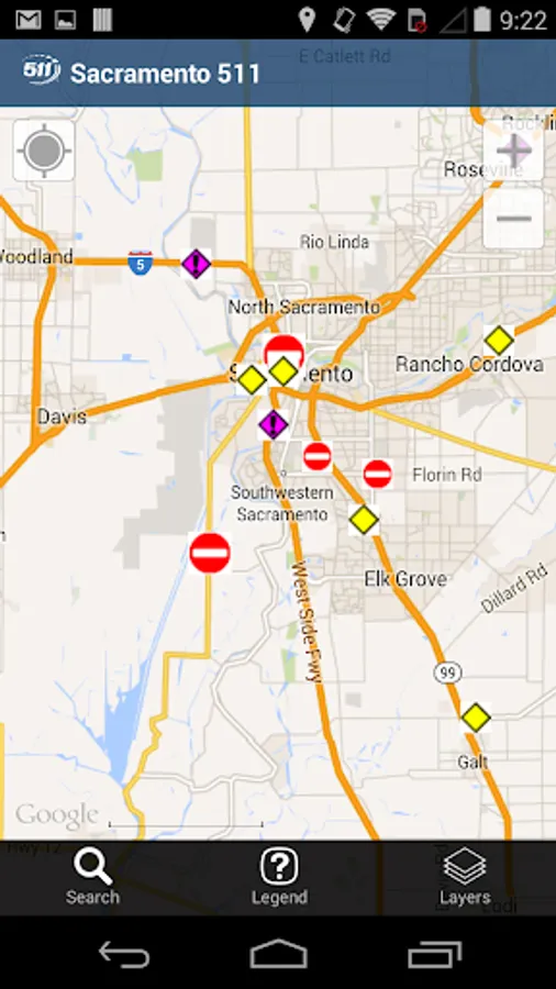 Sacramento 511 is the Sacramento Area Council of Government’s (SACOG) official traffic and traveler information resource. The Sacramento 511 app provides regional, real-time traffic information for interstates, U.S. routes, and state highways in the Sacramento metro area, including: