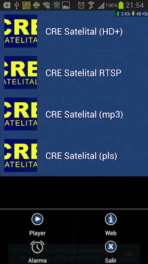 Download the application of the First Sports Radio in the Country Radio CRE Satellite AM and FM you can select, RTMP, Shoutcast or Icecast.