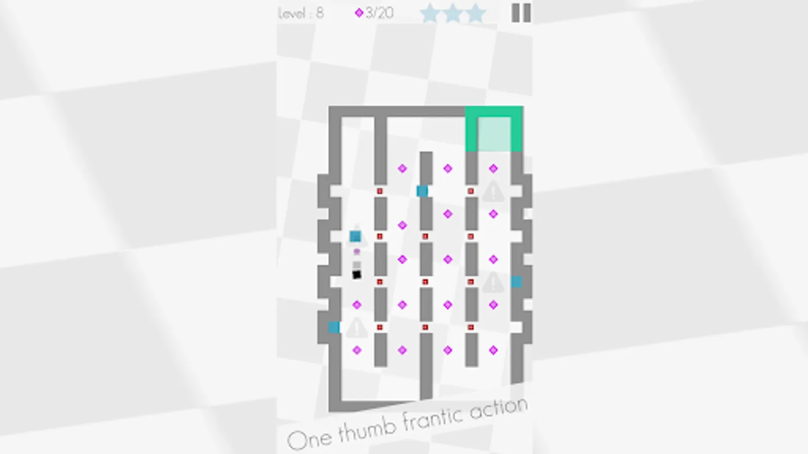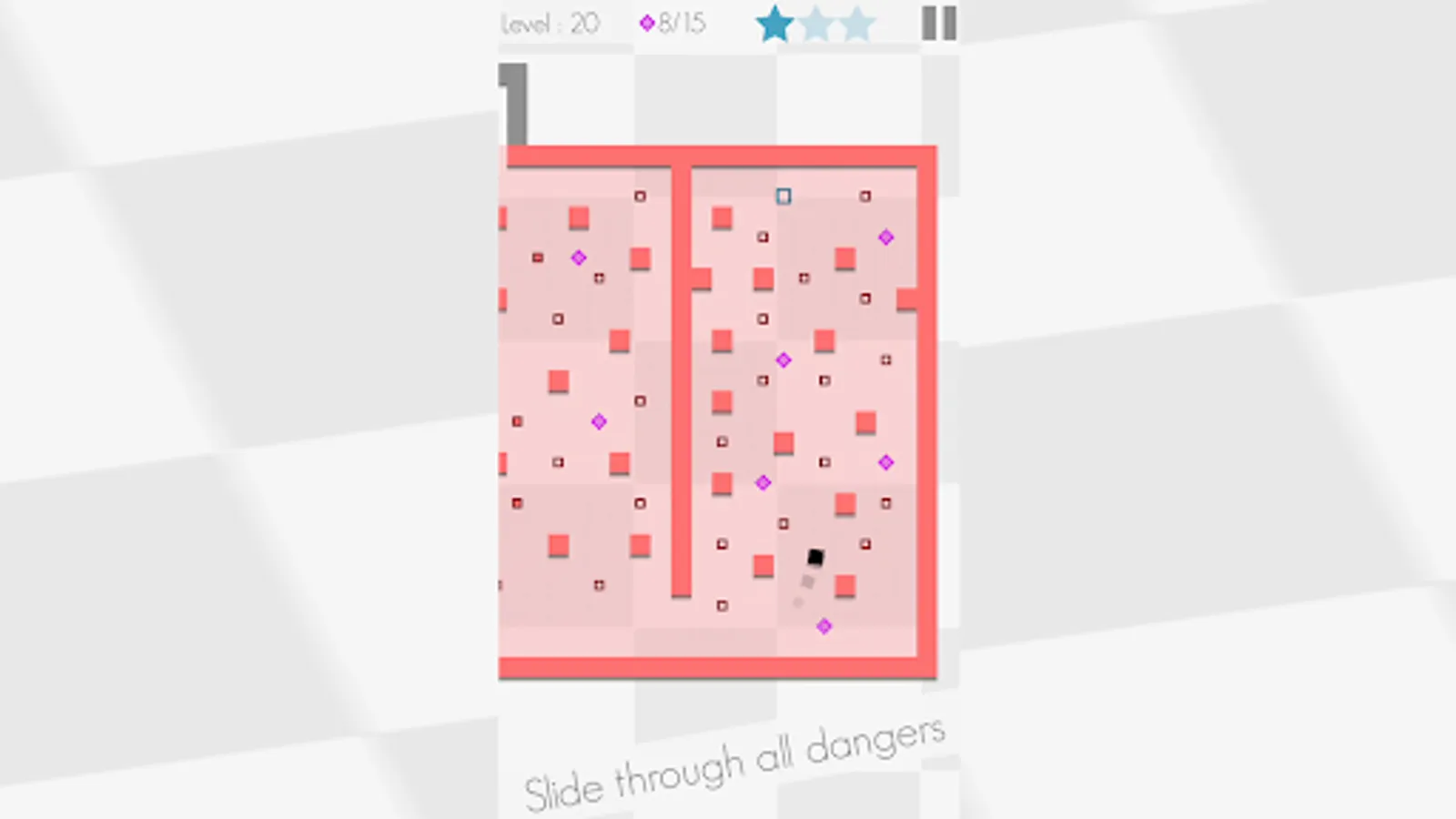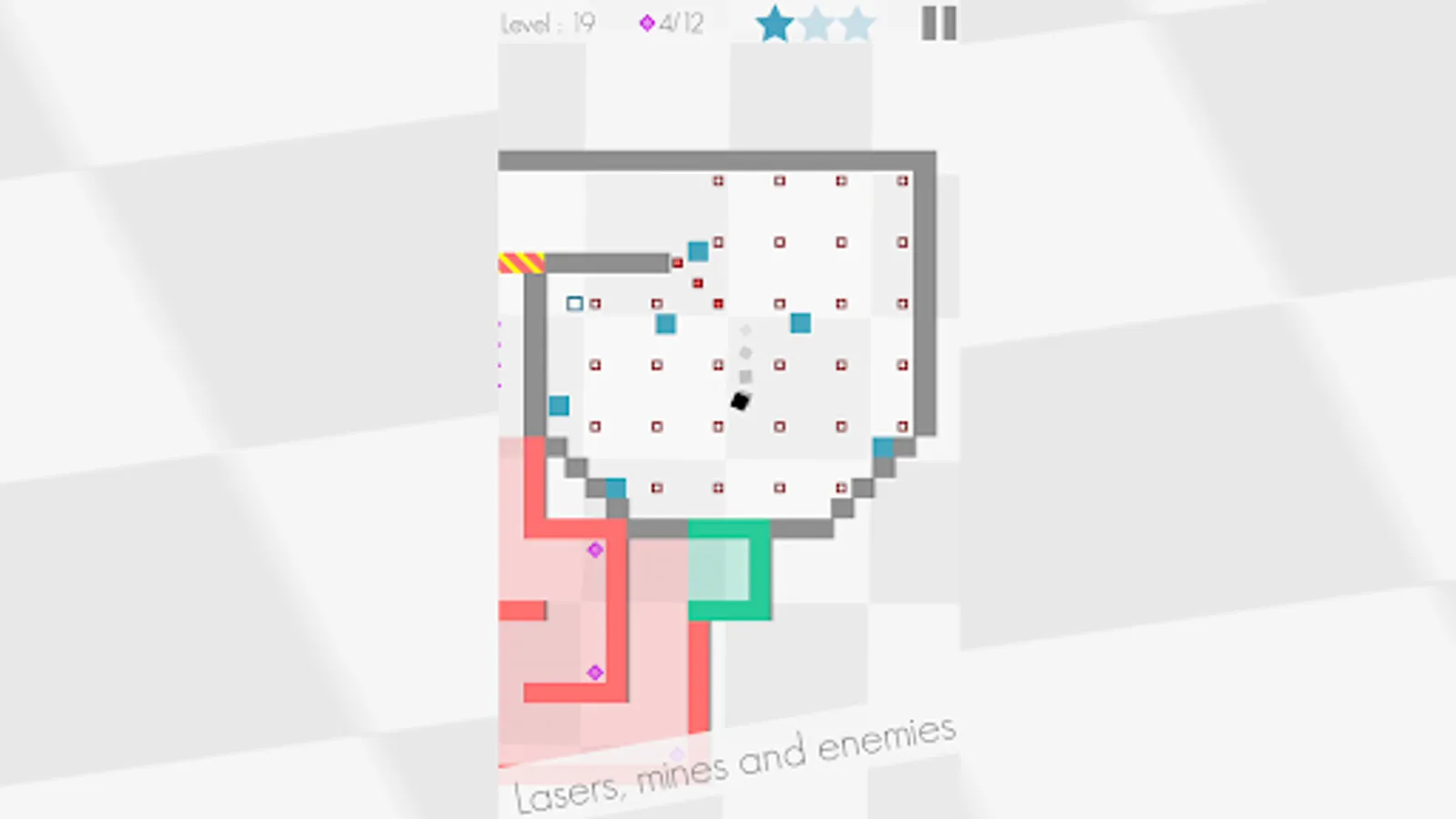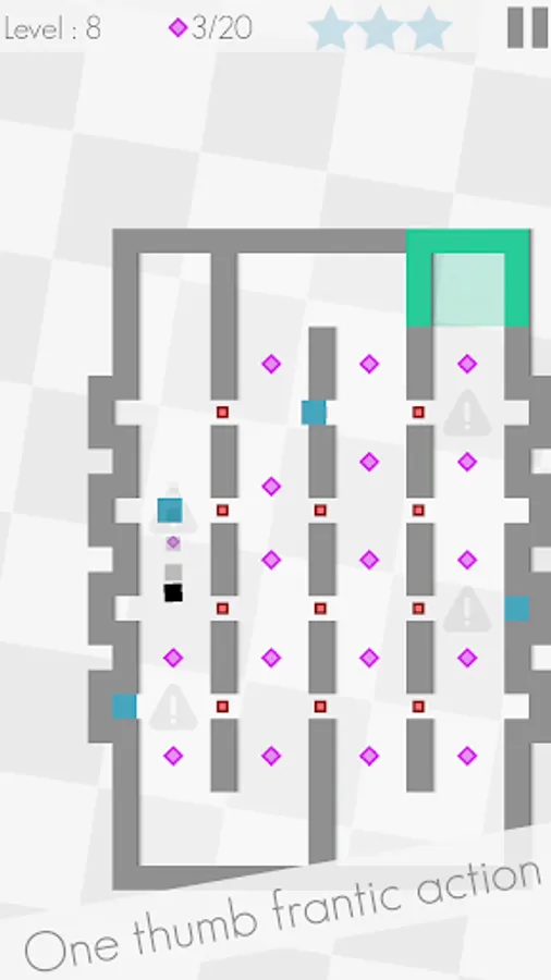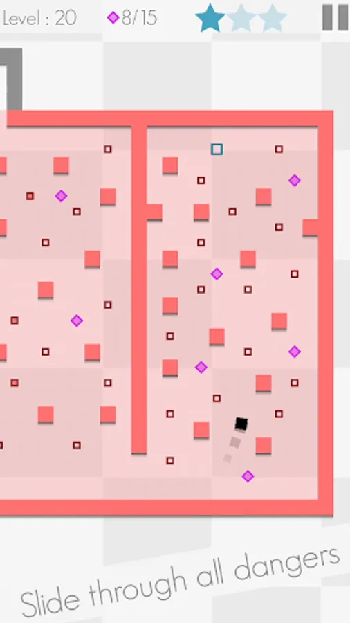 Super Asqr is all about a square, trapped in a collection of mazes, where you control him with your thumb and guide him through many obstacles to reach out the exit point. Not so easy though, each maze has been equipped with obstacles and deadly hazards, such as red walls, moving orange blocks, lasers, mines and many more. With avoiding all of these, you need to reach to the green zone to move into the next one. Each maze also contains three stars to collect, don't forget them to achieve the perfect level play. You need to think hard and play fast in order to overcome the levels, so be prepared!