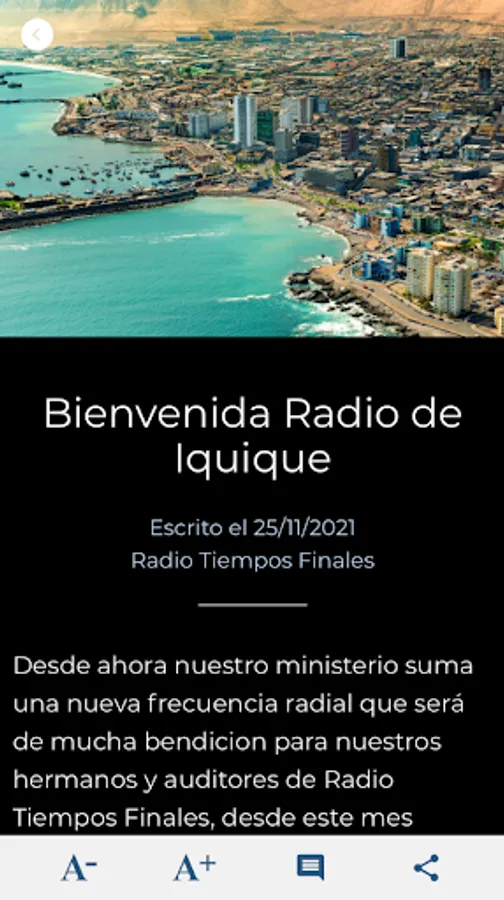 We are a radio station of our Pentecostal Evangelistic Ministry "The End is Approaching", presided over by our Pastor Evangelista Marcos Morales Chávez, in the Metropolitan Region we are located at 600 of the modulated amplitude dial, reaching several regions of the country, towards the north and the south of our beloved nation, with more than 8,000 watts of power. Now we also have our dial in the Tarapacá Region in the city of Iquique 107.7 FM, a new station with new programming specially selected for our brothers.