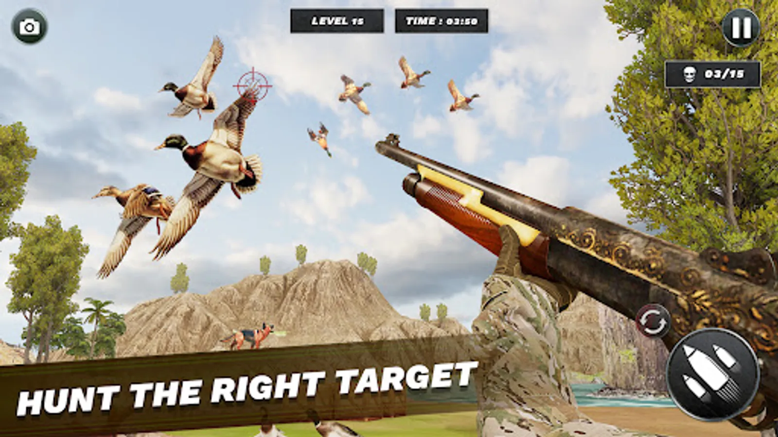 Shoot wild birds, ducks and deer and get coins to upgrade multiple sniper 3D hunting weapons. In Archery hunter mode, arrow will burn hunted birds and ducks.