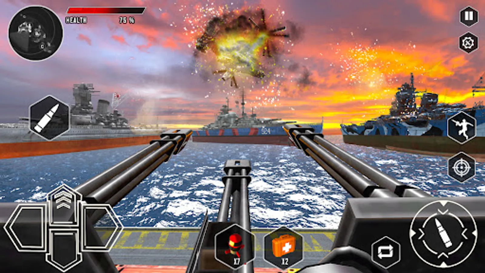 Be a part of the best navy battle and lead your idle fleet to victory. The infinite warfare games has many weapons, including missiles, machine guns, rockets, and many more in the blitz war of battleship games. Complete new missions and test your gunner shooting skills with the challenging missions in this free to play game. Fire a critical shot and beat all the pirates in this naval war strike fps game. This is a perfect blend of War Machines shooting simulator and gunner simulator games 2023.
