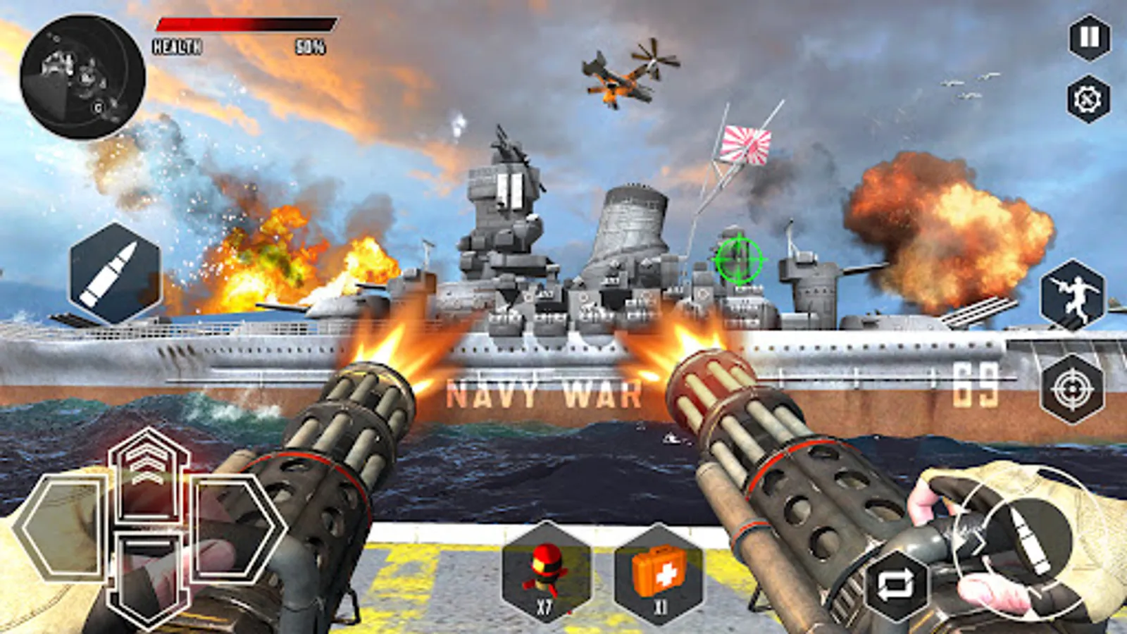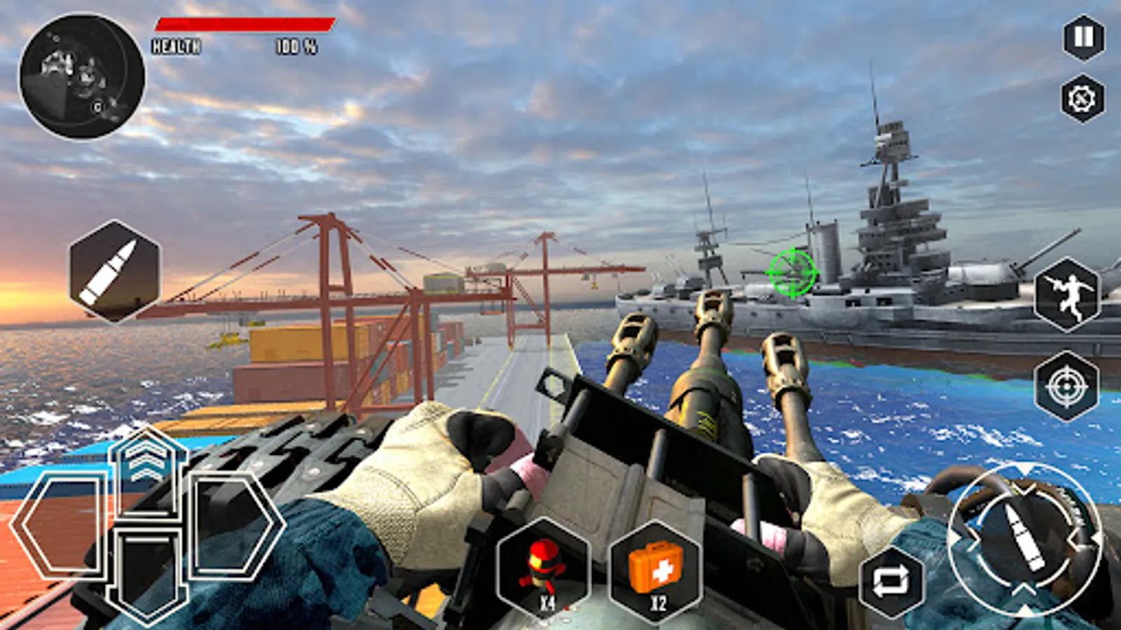 Welcome to an epic navy warship shooter experience in the world of naval army games! With Have you played new navy machine gun simulation games 2020? You can now play more challenging military navy battles without internet in Navy War Gunner War games. For the best performance in fps gunner games, strike attack with navy gunner and complete the naval battle.