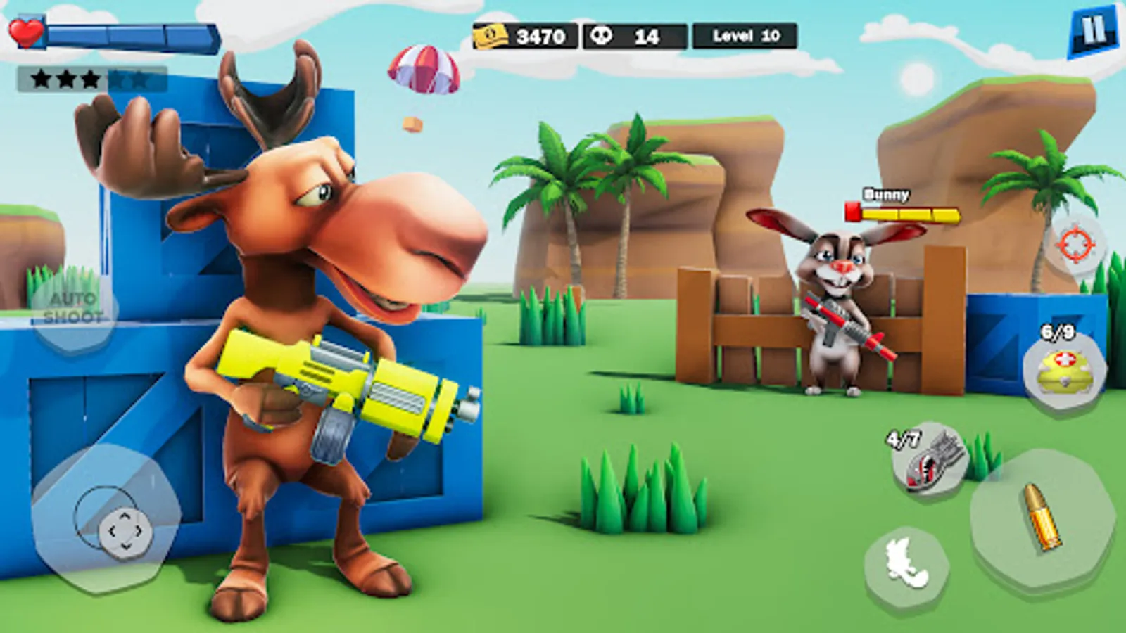 Play with different fun animal superhero games characters. Get the adventure of both shooting games and zoo animal war games. Itβs the chance to become the final king of fun games 2022. Be ready to discover best shooting combos and fun gun abilities. Collect awesome rewards and shooting guns to become the ultimate king of the zoo warfare games.