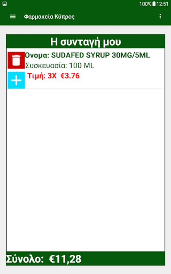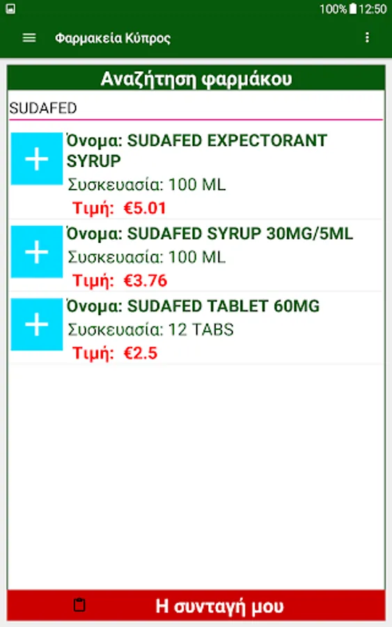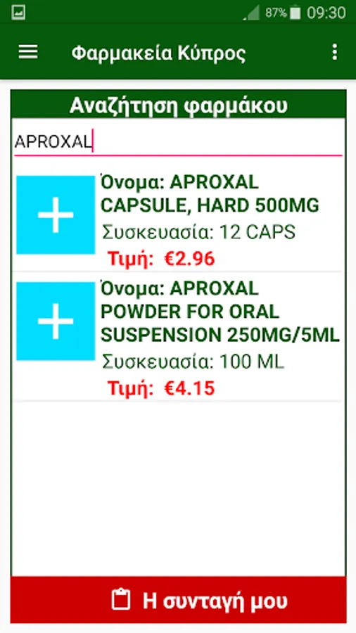 4. Search for drugs and drug price display, such as those sold in Cyprus Pharmacies.