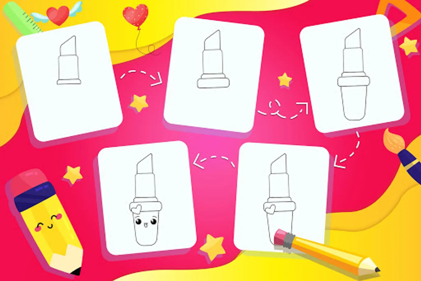 Learn How to Draw Girls Makeup Items & Accessories will increase your drawing skills to higher level with amazing Cute Kawaii Makeup Item drawing. This amazing Kawaii Girl Accessories Drawing app provides step by step guide to teaches you how to draw Cute Kawaii Makeup Things and improve your level of being an artist.