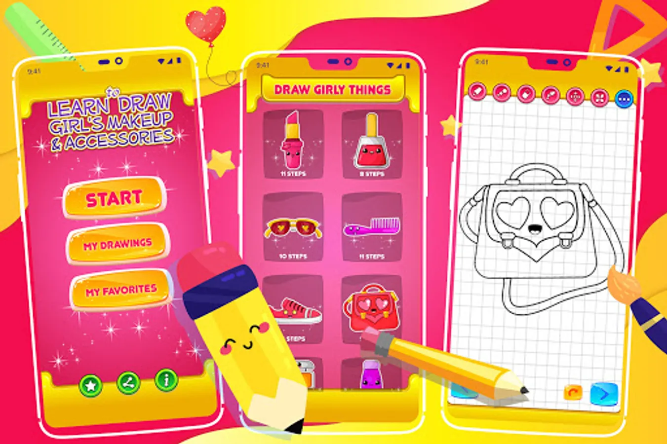 With easy drawing ideas and amazing fun techniques Draw Cute Girl Makeup Items becomes favorite self-learning app, even person of every age can draw, color, paint and enjoy these unique cute things drawings.