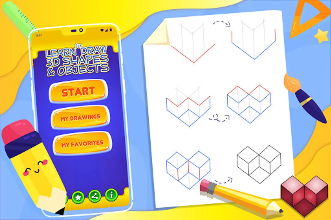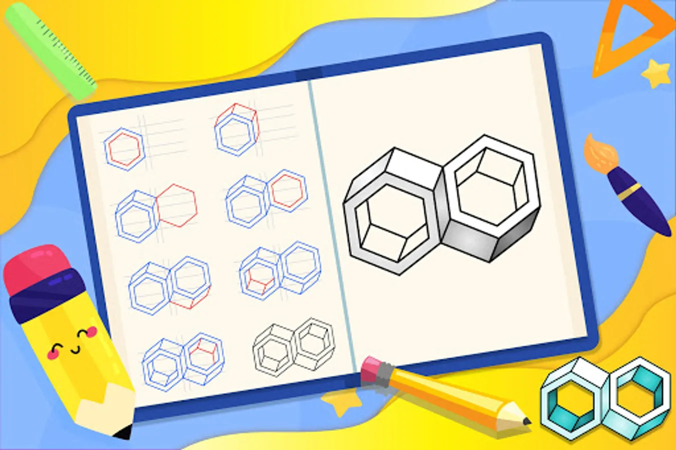 Learn How to Draw 3D Shapes & Objects will increase your drawing skills to higher level with amazing 3D drawings. This Drawing App provides step by step guide to teaches you how to draw 3D and improve your level of being an artist.