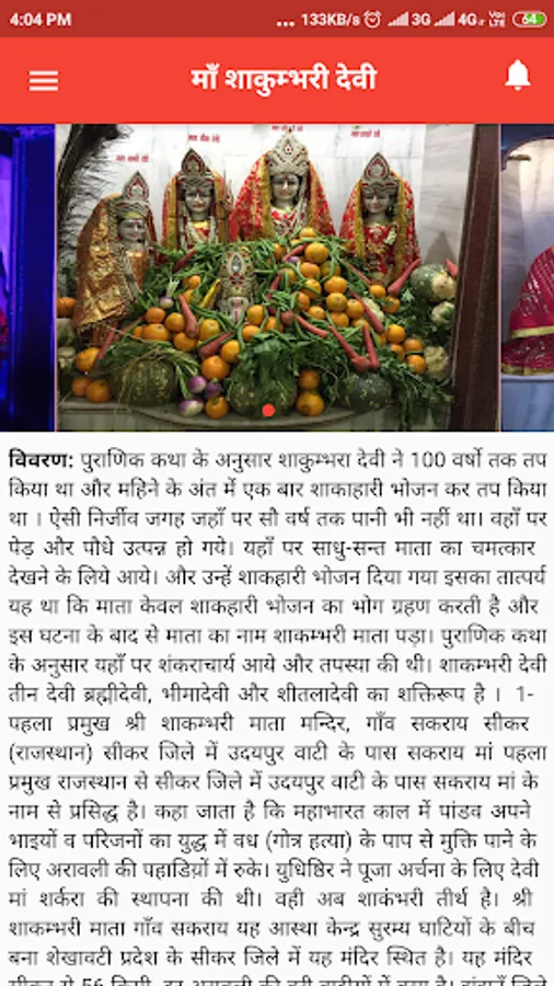 इस स्थान पर हिन्दू देवताओं के दो महत्वपूर्ण मंदिर है एक देवी शाकुम्भरी का समर्पित है दूसरा भुरा देव को, जो कि भगवान भैरव को समर्पित है। भगवान भैरव को देवी के गार्ड के रूप में माना जाता है कहां जाता है कि जहां शिव होगें वही शक्ति होगी और जहां शक्ति होगी वह शिव होगें।