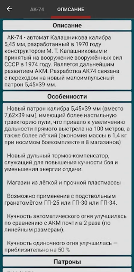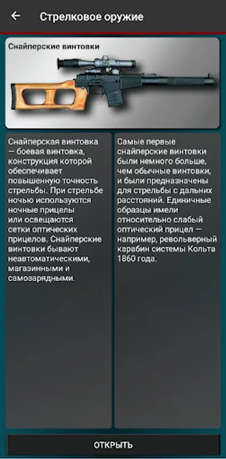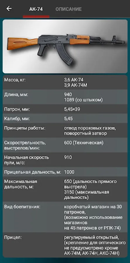 Russian weapons is an application on the weapons of the Russian Federation. At the moment, the application contains various types of small arms, aircraft, armored vehicles, rocket weapons.