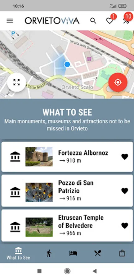Discover the city of Orvieto! Browse to see what's near you. Museums, monuments, archaeological routes, shops, restaurants, hotels all at your fingertips.