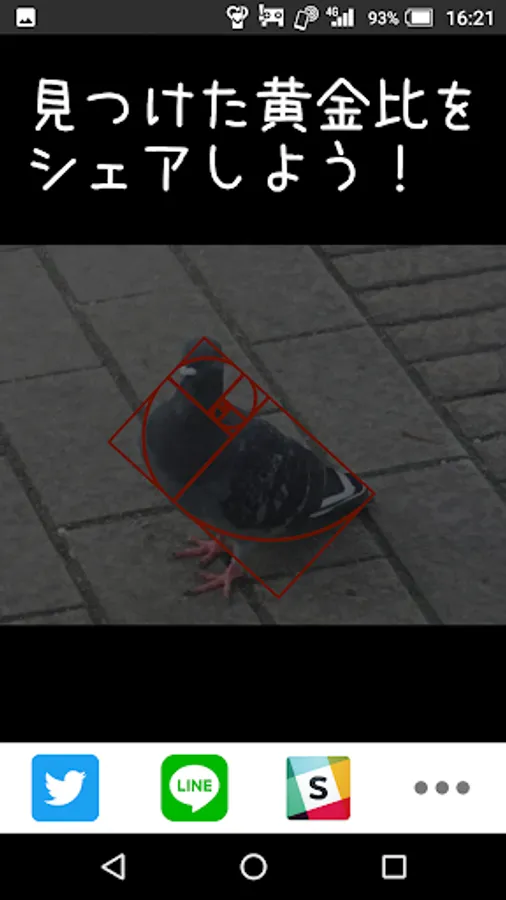 発見した黄金比は即座に保存・SNSでシェアできます。