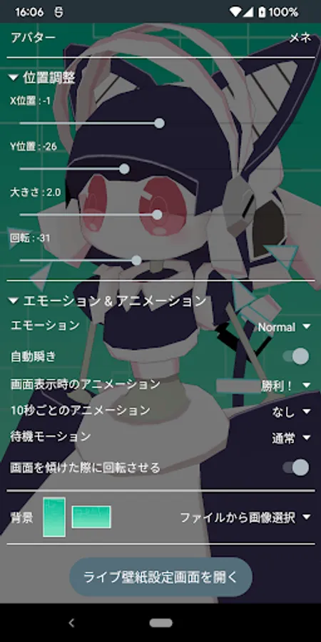 In addition, you can enjoy the unique expression of the 3D model, such as changing the facial expression in a certain period of time, animation when the terminal is attached, and the avatar moving according to the tilt of the terminal!