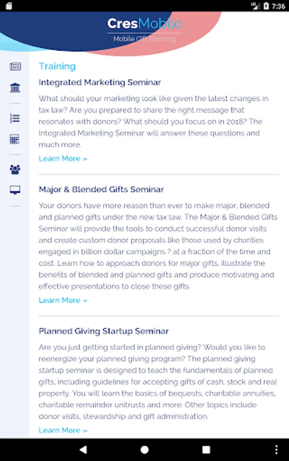Crescendo moves gift planning to the clouds with the introduction of CresMobile, the first smartphone application for Gift Planners on the go! CresMobile is an application for planned giving calculations.