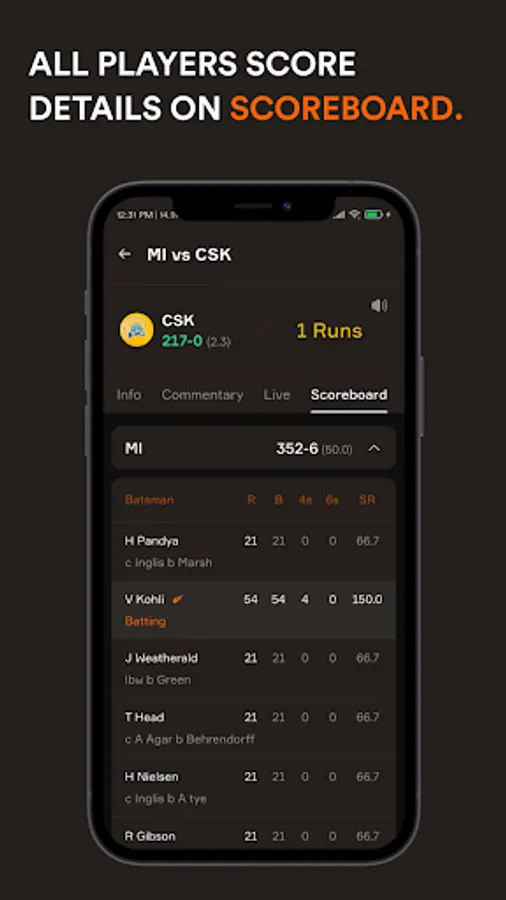 Stay up-to-date with live cricket match updates, including detailed scorecards, venue details, playing XI and squads, live ball by ball commentary, and accurate match odds and session. Our app also provides finished match complete details.