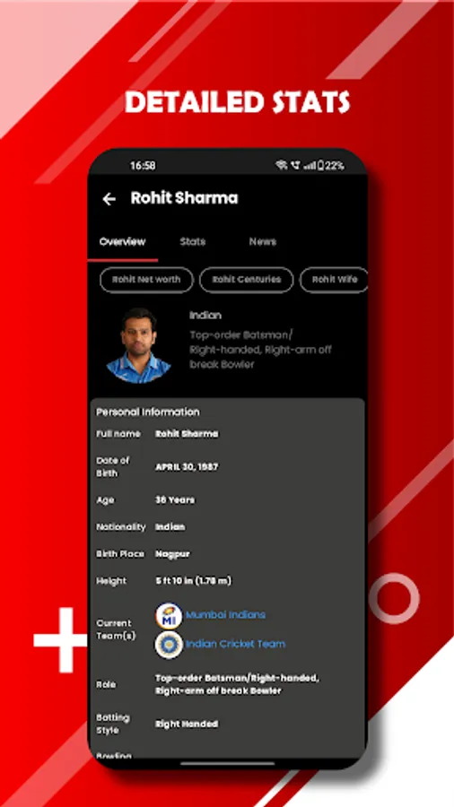 π€ Detailed Player Stats: Every player's journey, achievements, and recent performances are just a tap away.